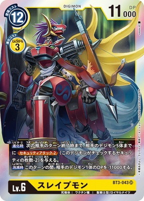 【進化時】次の相手のターン終了時まで、相手のデジモン5体までに≪セキュリティアタック-2≫(このデジモンがチェックするセキュリティの枚数-2)を与える。【消滅時】このターンの間、相手のデジモン1体のDPを-11000する。