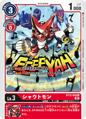 【アタック時】[ターンに1回]このデジモンに≪セーブ≫の記述があるとき、DP4000以下の相手のデジモン1体を消滅させる。