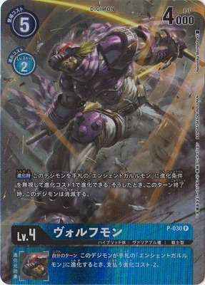 【進化時】このデジモンを手札の「エンシェントガルルモン」に進化条件を無視して進化コスト1で進化できる。そうしたとき、このターン終了時、このデジモンは消滅する。