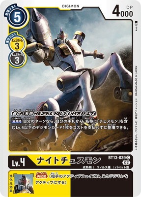 【消滅時】自分のターンなら、自分の手札から、名称に「チェスモン」を含むLv.4以下のデジモンカード1枚をコストを支払わずに登場できる。