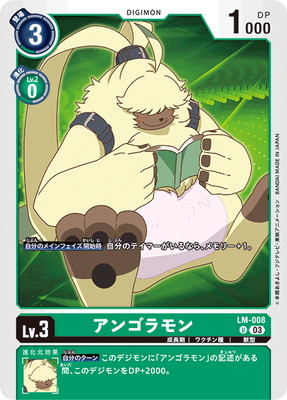 【自分のターン】このデジモンに「アンゴラモン」の記述がある間、このデジモンをDP+2000。